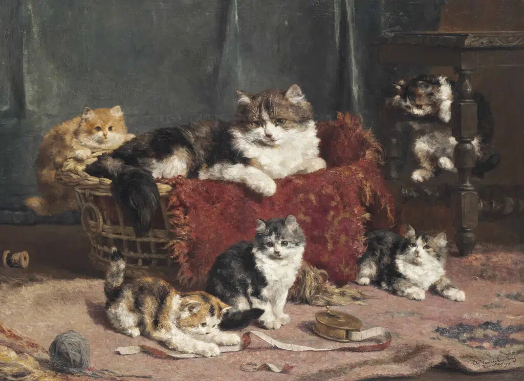 Christie’s, New York, 29 avril 2013, 19th Century European Art, lot 58, “A Cat with her Kittens”, 24 681 € environ.
