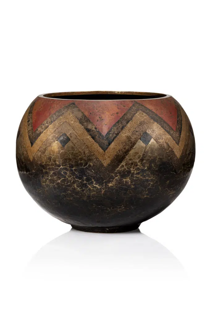 • Vase en cuivre à patine brune, décor géométrique, signé “Linossier Lyon” – 6 500 € (Sotheby’s Paris, 15 décembre 2020, lot 73)