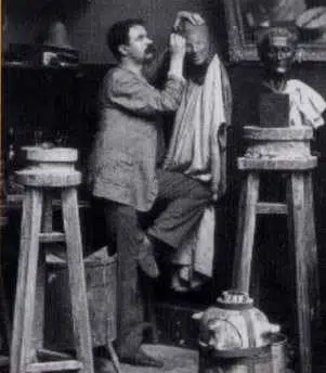 Expertise des œuvres de l'artiste et présentation de celui-ci, portrait photographique de l'artiste "Medardo Rosso dans son atelier vers 1890”.