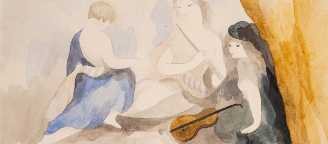 Le 1er juillet 2025, la maison de vente MILLON a adjugé pour 12 000 € l’œuvre “Le concert, Trois femmes”, une aquarelle sur papier de Marie Laurencin datée de 1927.